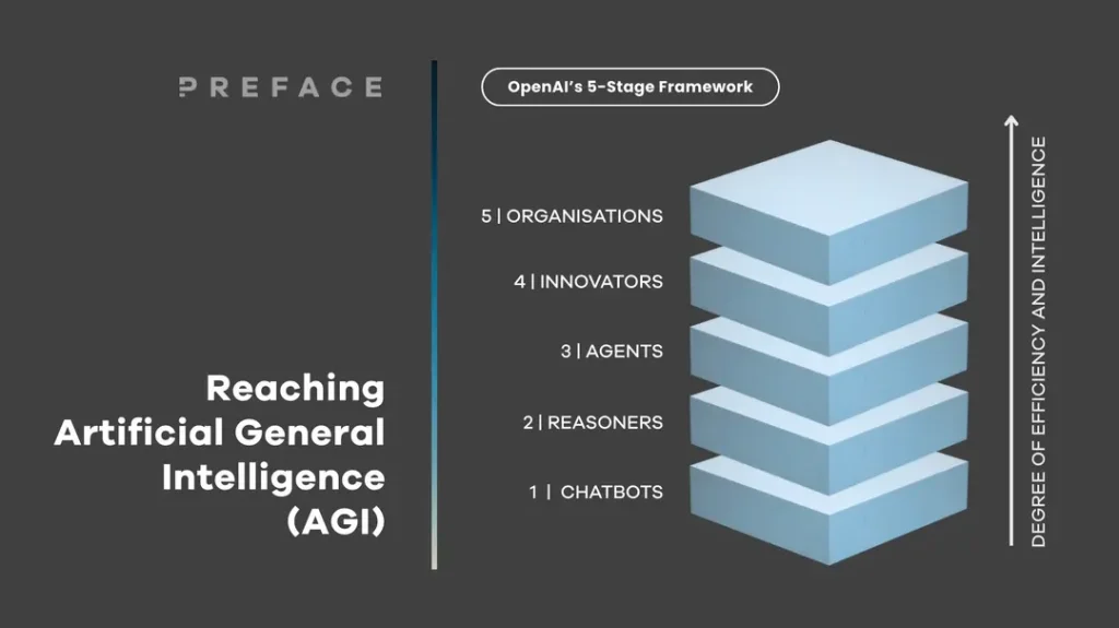 发力Agent:目前各大AI通用助手的能力还不算惊艳,仍然需要发力Agent,迅速打响名声,打出市场。发力Agent可以从两个角度考虑这个问题,分别是能力供给端和用户需求端。能力供给端:模型端的供给估计除了千问、字节、Deepseek团队,其余的小公司、小团队是很难搞定。这部分的门槛儿还是挺高的。你看文心一言团队之前这么强(国内第一个跟进/对标ChatGPT的团队),但是现在再看看业界的声量。另外,腾讯的大模型团队你有听过吗?估计没有吧,不是你的消息面不广,是他们做的真的不行~需求端:最近我观察用户在AI助手里面的问题,很多已经不再满足于简单的闲聊了。这类query大多是多个小任务汇聚成的一个大任务。比如:query = 找出今天涨幅最大的5家AI公司,并详细分析这5家公司最近的消息面。同时将这5家公司最近的财报数据整理成Excel发给我。这也正应了那个OpenAI所说的AI发展的5个阶段: