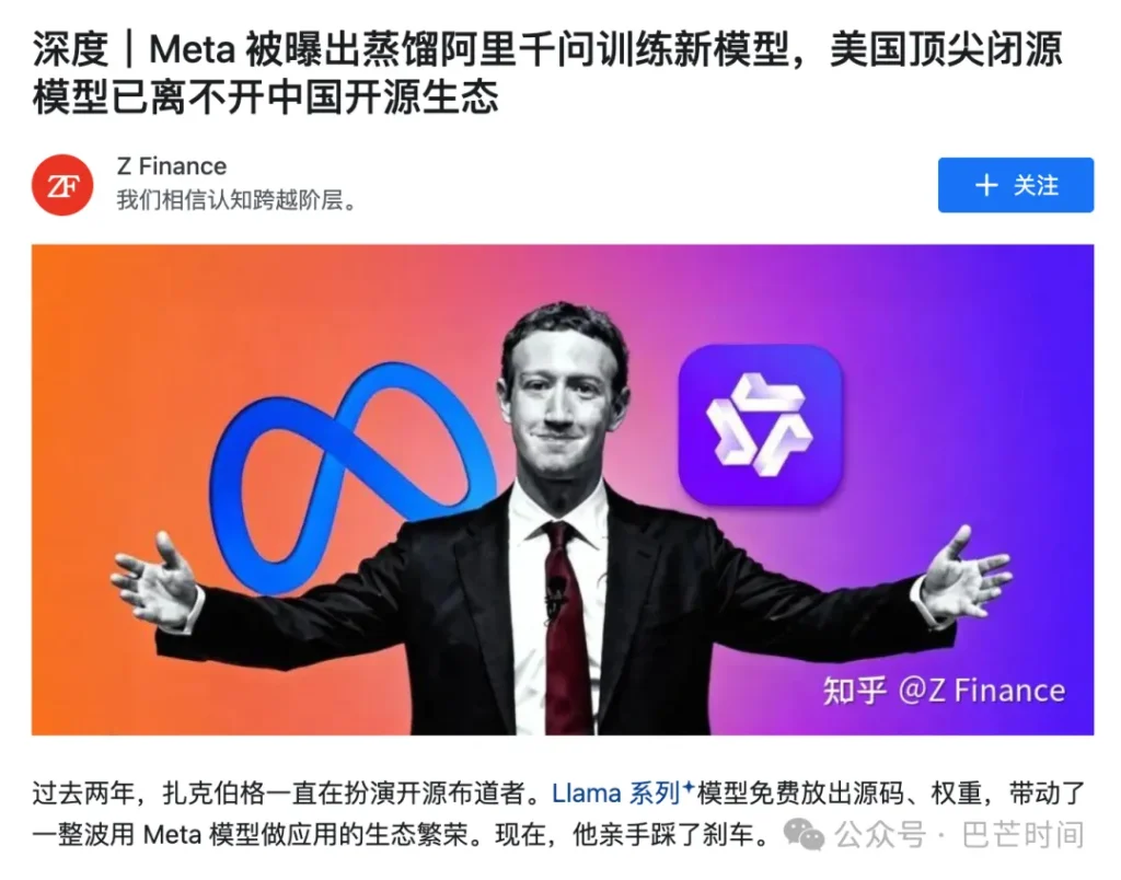 再看阿里目前来看,阿里的优势是基座模型以及云服务一体化。怎么形容阿里千问模型系列的强呢?还是以我亲身经历为例。我之前在百度文心一言团队,文心一言尚未开源的时候,团队内部都是没法看到文心模型的(同事戏称能有啥保密成这样,结局大家都知道了:今年DeepSeek出来后,百度搜索接入DeepSeek…),那会儿我们搞数据就只能用千问系列的模型。昨晚也看到消息爆料:传Meta在蒸馏千问系列的模型,将蒸馏的模型闭源使用……